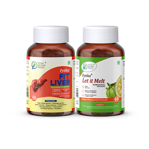 The power of detoxification and slimming with the Fytika Fit Liver + Fytika Let It Melt (Detox & Slim Duo Combo). Fytika Fit Liver is a natural liver detox supplement, rich in antioxidants and anti-inflammatory properties, working to enhance liver health and metabolism by detoxifying and restoring damaged cells. Meanwhile, Fytika Let It Melt presents a natural weight loss solution infused with Garcinia Cambogia Extract, Green Coffee Extract, Triphala Extract, Kali Jeeri, and Piperine. Together, these supplements offer a holistic approach to achieving weight loss goals while maintaining overall well-being.